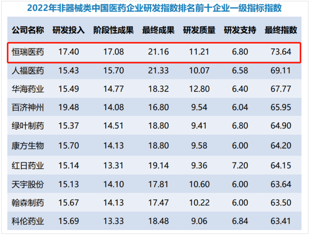 研发量质齐升,G22恒峰医药蝉联非器械类中国医药企业研发指数排名榜首
